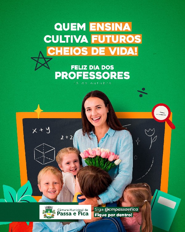 Hoje foi um dia especial para celebrar aqueles que dedicam suas vidas à educação e ao crescimento dos nossos jovens. No Dia dos Professores, reconhecemos o trabalho árduo e inspirador dos educadores que plantam sementes de conhecimento e sabedoria, que florescem para a vida toda. Na Câmara Municipal de Passa e Fica, prestamos homenagem a esses profissionais que, com amor, paciência e dedicação, transformam o futuro de nossa comunidade. Que possamos sempre valorizar e apoiar aqueles que moldam mentes e corações, tornando o mundo um lugar melhor para todos. Parabéns a todos os professores pelo seu dia!